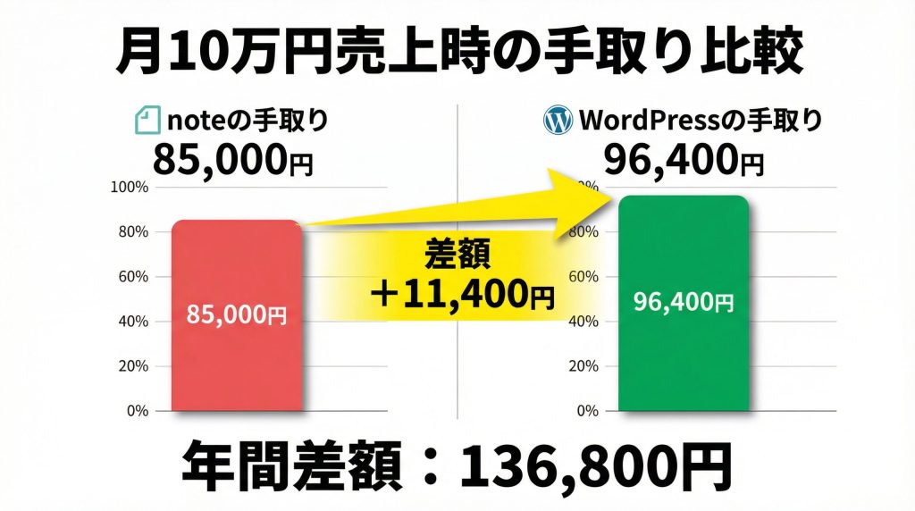 詳細な収益比較(月10万円売上の場合)